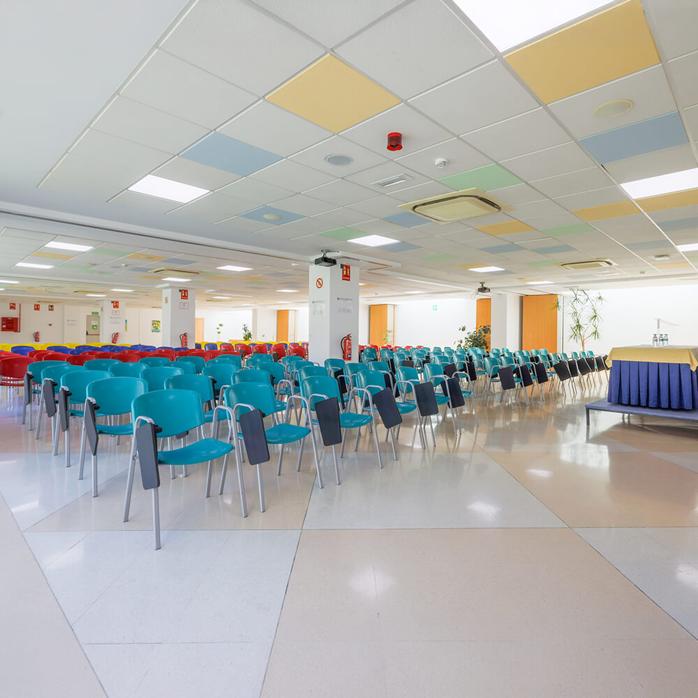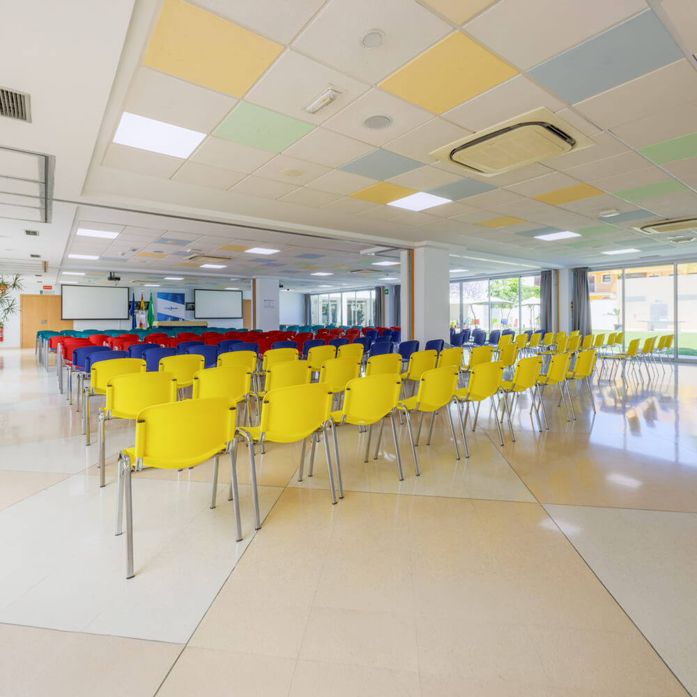 Eventos grandes o pequeños… en nuestro albergue de Torremolinos. Contamos con una gran sala con capacidad máxima para 280 personas que se puede panelar en cuatro salas más pequeñas con capacidad desde 40 personas; y con un auditorio de 300 plazas.