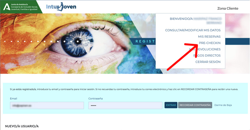 Si no estas registrado/a, tendrás que hacerlo con el mismo correo con el que hiciste la reserva desde https://www.inturjoven.com/registro