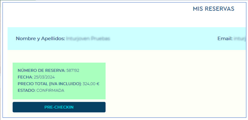 4. Selecciona tu reserva y haz clic en PRE-CHECKIN: