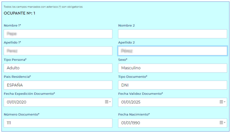 6. Introduce los datos del/los ocupante/s y haz clic abajo en PRE-CHECKIN: