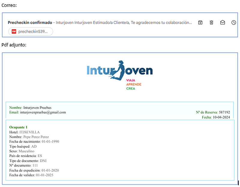 El sistema te mostrará un mensaje de validación en pantalla, pero además, recibirás un correo electrónico con la confirmación y con un archivo adjunto con los datos del/los ocupante/s.